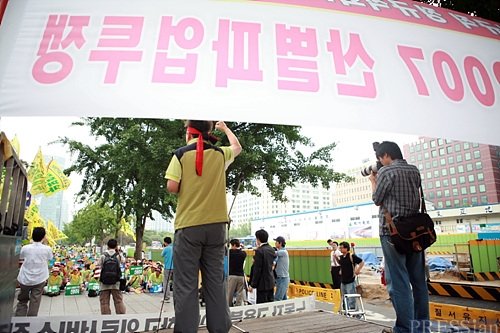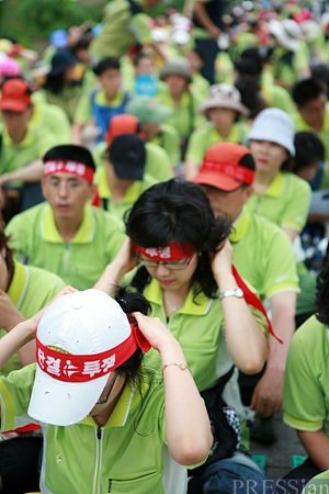홍명옥 위원장은 이날 오후 서울 여의도 국회의사당 앞에서 열린 총파업 선포식에서 "기쁜 소식을 전해드리고자 몇 날 며칠을 꼬박 세우며 교섭을 했지만 결과는 참혹했다"며 "사용자들의 태도는 차마 눈뜨고 볼 수 없는 비참한 수준이었다"고 비판했다.