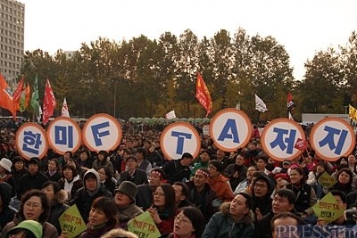 국제노동조합총연맹(ITCU)와 경제협력개발기구 노동조합자문회의(TUAC to the OECD)는 28일 성명을 통해 "한미 FTA가 자본이동과 금융투기를 촉진함으로써 구조조정과 임금하락, 고용불안과 노동조건 악화를 초래할 가능성이 크다"고 우려하며 "양질의 노동과 핵심노동기준 존중의 내용이 담길 때까지 협정문 서명을 중단하라"고 촉구했다.