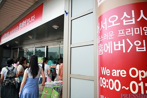 하지만 오전 11시 경 다른 점포의 조합원들이 하나 둘 모여들기 시작하자 홈에버 측은 아예 출입문을 용역 경비원을 동원해 지키고 손님들의 출입마저 통제했다.