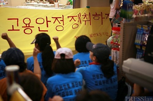 이들은 비정규직법이 시행되는 7월 1일 0시를 이 매장 안에서 농성을 벌이며 맞겠다는 계획이다.