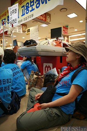 지난달 30일 비정규직 정규직화 등을 요구하며 홈에버 월드컵점을 점거한 홈에버, 2001아울렛의 비정규직들은 나흘째 점거 농성을 이어가고 있다. 인원도 처음 농성을 시작한 600여 명이 거의 그대로 남아 있다. 홈에버 월드컵점은 이들에 의해 영업이 나흘째 완전히 중단된 상태다. (☞ 관련기사 보기 : "이것이 노무현 정부의 비정규직 '보호법'입니까", "비정규직 대량해고, 다음은 정규직입니다")