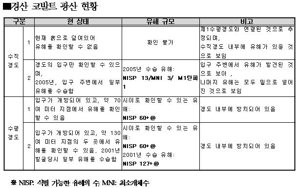 진실화해위는 "사건 현장에는 수평갱도 2개소와 대원골 골짜기에 유골 수백 구가 원형 그대로 방치돼 있고, 폐코발트 광산으로서 동굴이라는 특성 때문에 유골과 유해가 비교적 잘 보존돼 있다"며 "다만 인근 골프장 건설로 현장훼손의 우려가 있어 시급한 조사와 대책이 절실하다"고 밝혔다.