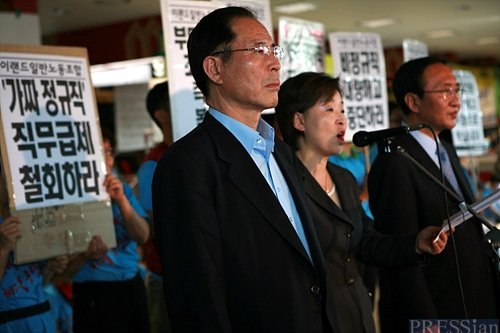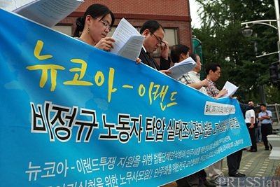 ▲ 노조에게 '불법' 운운하는 이랜드와 정부는 법과 원칙을 잘 지키고 있는 것일까? 뉴코아와 홈에버 사례 분석을 통해 교수·법률 단체들은 이랜드의 각종 불법·편법 행위와 이에 대한 정부의 미온적 태도가 이번 사태의 근본적인 원인이라고 지적했다. ⓒ프레시안