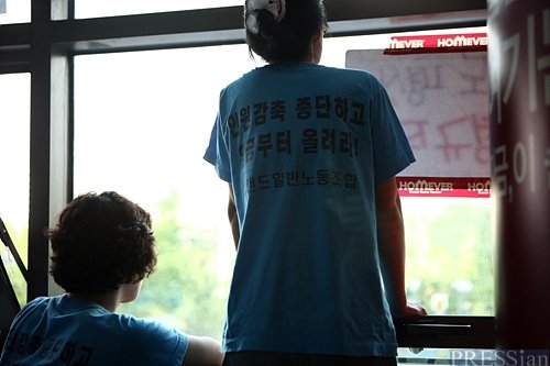 여름방학을 앞둔 17일, 아이들이 휴일을 맞아 엄마를 보겠다고 서울 상암동 홈에버 월드컵점을 찾았다. 중학교 1학년, 2학년인 아이들은 엄마 대신 집에 찾아 와 옥수수를 삶아 주신 할머니의 손을 잡고 농성장 앞까지 왔지만 엄마를 보는 일은 쉬운 일이 아니었다.