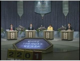 원희룡: 한나라당 다른 후보님들 공약을 보면 참 화려합니다. 우리 신용불량자들에게 7조 원의 재원을 갖고 패자부활전의 기회를 주겠다. 저는 당연히 해야 한다고 생각합니다. 또 어떤 분은 세금을 모두 줄여서 결국 경제 활력을 살리면서도 복지를 늘리겠다는 말씀을 하시는데 결국 현실적으로 얼마나 진정성이 있고 실현 가능성이 있느냐. 결국 우리 사회에서 한정된 재원을 갖고 어떻게 재원을 확보한 것인가 우선 순위를 둘 것이냐. 근본적인 철학과 판단을 제시해야 한다고 봅니다.