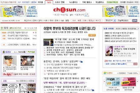 그러자 <조선>은 홈페이지에 낮 12시 25분께 "이명박 후보와 독자 여러분께 사과드립니다"라는 정정보도를 머릿기사로 올렸다. 오보를 인정하는 내용의 사과 기사를 머릿기사로 올린 것은 매우 이례적인 편집이다.