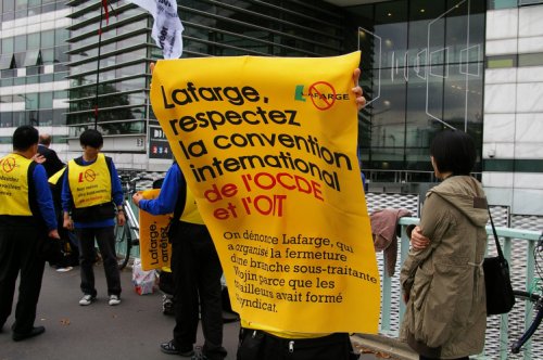 라파즈 그룹은 국제 노동기준을 규정한 각종 협약에 가입한 기업이다. 그 중에서도 라파즈 그룹이 합의한 '기업의 사회적 책임과 국제 노사관계에 관한 협약'에 따르면 자국 내 고용된 노동자 뿐 아니라 사업 파트너, 하청 회사, 부품 공급사 노동자에 대해서도 '노동권 보호'를 할 의무가 있다.
