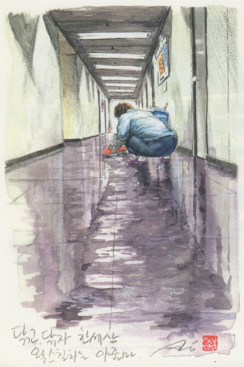 김 씨는 화첩인터뷰 작품 중 '영도해녀 강해춘' 편을 최고작으로 꼽았지만 여기에서는 다른 작품을 소개한다. '청소 아줌마'이다. 이 화첩산문집에는 총 39편의 작품이 실려있다.