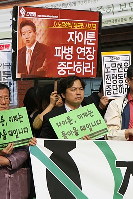 박정은 참여연대 평화군축센터 팀장은 "지난 5년 동안 북한과 관련된 위기의 발생과 위기의 해소 과정에서 벌어진 일들을 보면 과연 파병이 도움이 됐는지 진지하게 한 번 돌아보라"며 "미국에 대한 양보만을 강요하는 노무현 대통령은 국민들에게 좌절감만 안겨주고 있다"고 말했다.