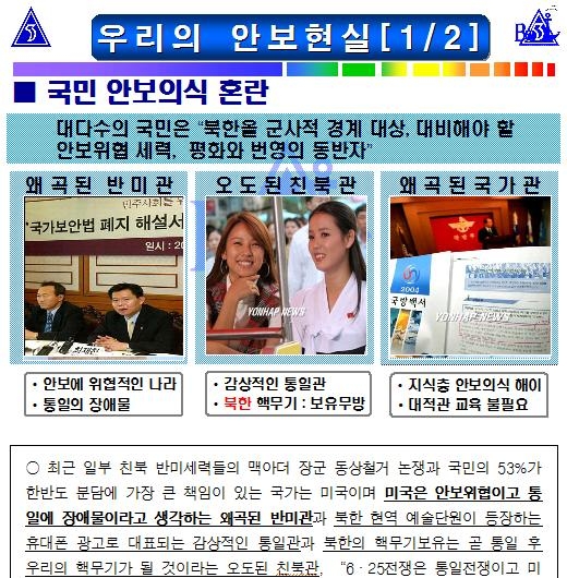 한편 위의 자료에는 강정구 교수에 대해 '지식층의 안보의식 해이'라고 규정했고, 전교조에 대해서도 '친북반미교육' 단체인 것으로 보이도록 제작돼 있어 논란이 일 것으로 보인다.