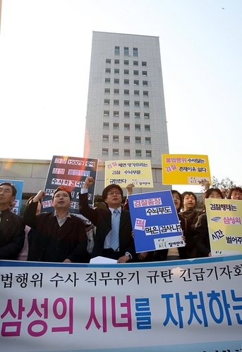 이들은 특히 "이 사건 고발의 핵심 취지는 떡값 검사의 존재에만 있지 않다"며 "삼성의 불법 비자금, 불법 지배권 승계 의혹 등 해소되지 않고 날이 갈수록 증폭되는데, 삼성의 핵심 내부인사였던 김 변호사의 증언 이상으로 무엇이 더 필요하다는 것이냐"고 즉각 수사를 촉구했다.