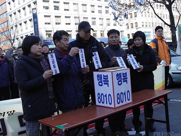 민주노총은 "민주노동당의 집권을 위한 민주노총의 전략은 '행복 8010'"이라고 설명했다. "80만 조합원 각자가 10명을 조직한 800만 표와 300만 농민과 100만 도시 빈민이 지지하면 민주노동당의 집권이 현실화된다"고 민주노총은 주장했다.