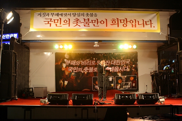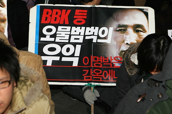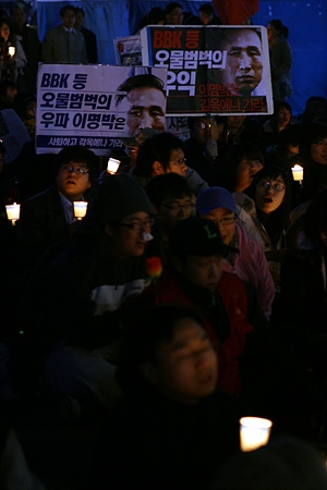 한국진보연대 등이 서울 광화문 네거리 동화면세점 앞에서 오후 7시부터 '거짓과 부패에 맞서 양심의 촛불을-국민의 촛불만이 희망입니다'라는 제목의 촛불집회를 열었다. 집회 명칭에 이명박 후보의 이름은 빠져 있지만, 집회의 초점은 BBK 의혹과 관련해 이명박 후보의 후보직 사퇴 촉구였다.