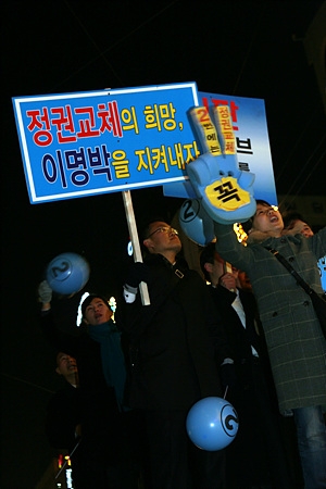 한 참가자는 "대선 기간 동안 어떤 후보가 대통령이 돼야 할지 고민하다가, 막판에는 이명박 후보가 대통령이 돼서는 안 된다는 생각 외에는 할 수 없었다"며 "심각한 도덕적 결함이 있는 후보가 대통령이 되면 앞으로 우리 사회가 도덕적이리라 기대할 수 없을 것"이라며 집회에 참가한 이유를 밝혔다.