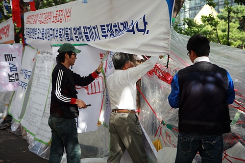 김유식 대외협력국장은 "교섭에 성실히 응하지는 않으면서 농성장에서만 나가라고 하면 이 문제가 해결되냐"며 "날씨도 점점 더 추워지는데 거리 농성장에서마저 쫓아내면 어디로 가야 할지 막막하다"고 토로했다.