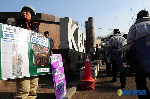 하지만 아무도 관심을 가져주지 않았다. 지난 15일 서울 종로구 삼청동 인수위 앞에서 열린 '언론 사찰' 규탄 기자 회견에는 방송사 카메라를 비롯해 기자들이 몰렸지만 같은 장소에서 뒤이어 열린 GM대우 비정규직지회 등 비정규 노동자의 기자 회견은 '썰렁'했다.