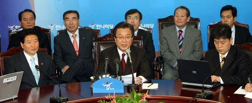이밖에 '경부운하' 논란에 대해 강 대표는 "공약이니까 가능하면 지키도록 해야 한다는 입장을 가지고 있지 않겠느냐"면서도 "그러나 우려하는 사람들이 있기 때문에 충분히 국민들 여론과 전문가를 통한 검증을 해가면서 추진하겠다"고 말했다.