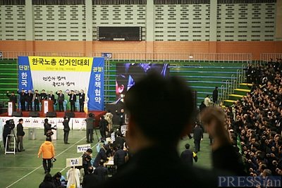 한국노총은 29일 오후 서울 강서구 88체육관에서 선거인대회를 열고 차기 집행부를 선출했다. 전체 선거인단 2788명 가운데 2149명이 참가해 1967명이 찬성표를 던졌다. 반대는 179표, 무효는 3표였다.