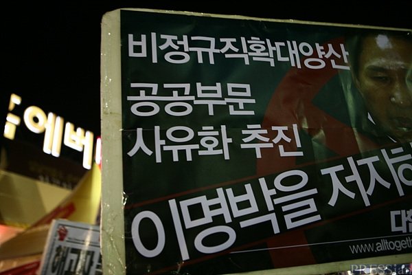 지난해 말 회사가 먼저 "연내 타결을 원한다"며 양보안을 내놓아 노동조합 교섭위원을 놀래키기도 했었다. 물론 대통령 선거 전의 일이다. 그랬던 회사는 당시 이명박 후보의 당선이 분명해지자 말을 바꿨다. "대선 끝나고 교섭을 다시 하자"고 했다.