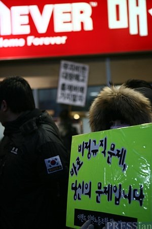 이미 저녁 7시가 훌쩍 넘긴 시간, 이 말을 끝으로 이들은 살을 에는 추위와 짙어가는 어둠 속 문화제를 마치고 또 다시 '매장 봉쇄 투쟁'을 벌이기 위해 홈에버 면목점을 둘러싸기 시작했다.