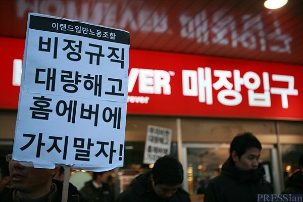 더욱이 다른 사업장에 비하면 이랜드 비정규직의 싸움은 복 받은 편이다. 여론도 호의적일 뿐 아니라 민주노총의 지원도 이례적으로 많이 받았다. 민주노총이 개별 사업장의 문제로 대의원대회까지 열고 총력투쟁을 벌인 것은 처음이었다. 비록 일부 대기업 정규직노조는 여전히 '모른 척'하고 있기는 하나 십시일반 돈도 모아줬다.