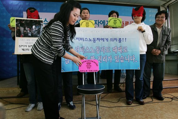 아침 출근부터 저녁 퇴근까지 하루 종일 서서 일하는 노동자를 위해 민주노총이 19일 "서비스 노동자에게 의자를" 캠페인을 시작한다고 밝혔다.