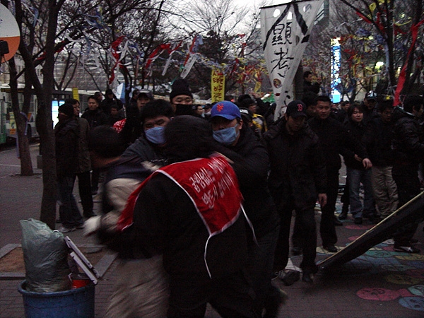 '직무유기'는 지난 11일 코스콤 비정규직의 농성장 철거 과정에서 경찰이 용역 경비원의 폭력과 인권유린을 외면했다는 것이다. 이날 동원된 용역 경비원은 영등포구청이 고용한 것이었다. (☞관련 기사 : "농성장 철거 중 위법 행위 묵인과 폭력 동조한 경찰, 직무 유기")