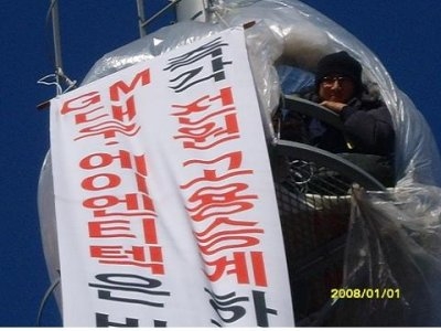 12월 27일 처음 20m 상공으로 올라갔던 박현상 GM대우비정규직지회 조직부장이 지난 29일 건강 문제로 내려온 뒤 이대우 GM대우비정규직지회 지회장이 이날로 35일째 고공농성을 이어가고 있다.