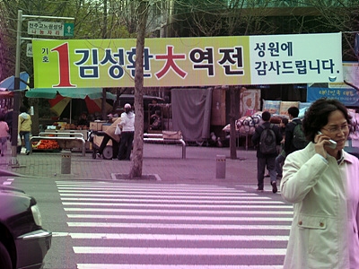 현수막 문구만 봐서는 선거가 끝이 난 줄 착각할 수도 있었다. 그러나 이는 통합민주당 김성환 후보 측의 현재 양강 구도에서 밀려난 상황을 그대로 보여주는 것 같았다. 노원병에서는 기호2번 한나라당 홍정욱 후보와 기호6번 진보신당 노회찬 후보가 치열하게 접전을 벌이고 있는 지역이다.