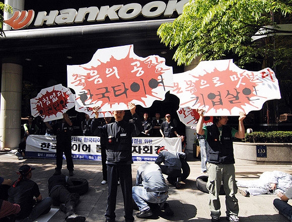 이들은 이날 서울 강남구 역삼동 한국타이어 본사 앞에서 가진 기자회견을 통해 "산재사망은 기업에 의한 살인이며 사회적으로 용납될 수 없는 범죄 행위"라고 주장했다. 이들이 산업안전 관련 최악의 기업 앞에 '살인기업'이라는 명칭을 붙이는 까닭이다.