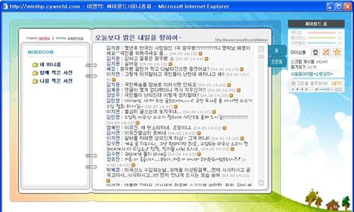 '방명록'은 폐쇄됐으나 '미니룸 답글달기' 란을 통해 네티즌들의 비판은 끊이지 않고 있다. 이날 3시 현재 700건에 육박하는 댓글이 올라왔으며 대부분 "국민 목숨을 담보로 이러시면 안 되죠"(김지윤), "수입된 미국산 쇠고기 청와대 식단으로 올려 드시길"(김민영) 등의 쇠고기 협상과 관련된 내용이다.