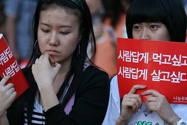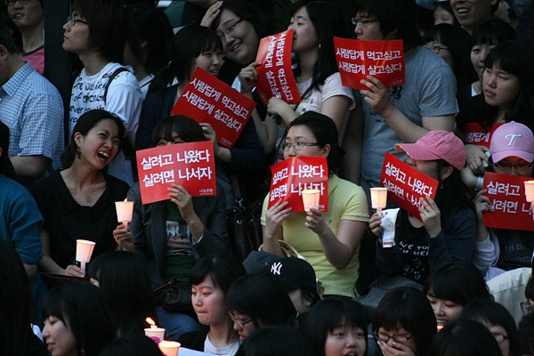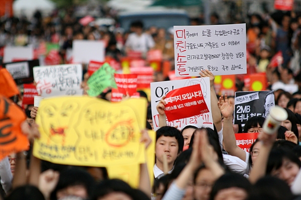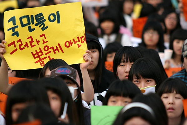 | ▲"미국에서 소를 수입한다구요? 친구들도, 나도, 가족들도 다 미쳐서 소리 지르고 발광하라고? 창창한 날들을 즐겨보지도 못하고 죽긴 싫어요." ⓒ프레시안 |