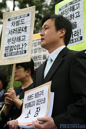 어쨌든 18개월 이상 근무자들이 무기계약직으로 전환되면서 남은 것은 18개월 미만 근무자들이다. 이날 소송에 참가한 사람들은 모두 여기에 해당됐다.