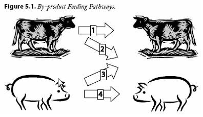 광우병은 소에게 소를 먹여 발생한 병으로 알려졌다. 광우병이 발생하자 영국 정부는 그림에서 1번 경로만 차단하면 광우병을 예방할 수 있으리라 생각했다. 1988년부터 90년까지 영국의 반추동물 사료 금지 정책(ruminant feed ban)이다. 그러나 광우병은 사라지지 않았고 2만7000마리의 소에서 광우병이 발생했다. 이런 교차오염이 문제가 되자 영국 정부는 소의 '광우병 특정 위험 물질(SRM)'을 사료에서 금지하는 정책(SRM feed ban)을 1990년부터 96년까지 취했다. 그림에서는 2번 경로의 부분 차단이다. 그러나 이 기간에도 1만6000마리에서 광우병이 발생했고 결국 영국 정부는 근본적 조치 즉 1번부터 4번까지의 모든 교차오염 경로를 차단하는 정책을 채택한다. 즉 '모든 농장 동물에 대한 동물성 사료 금지 조치 (animal feed ban)'다. 이 조치이후에야 광우병 발생이 줄어든다.