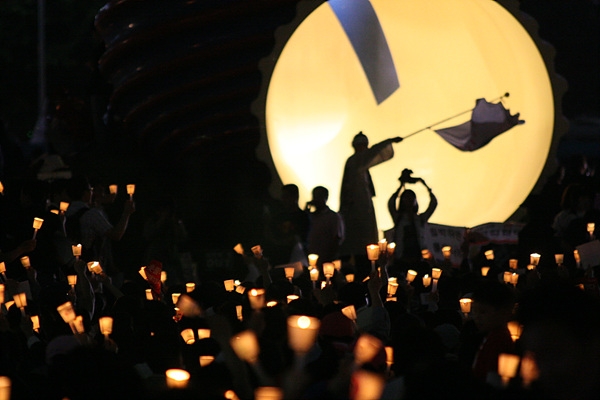 경찰과 정부는 이날 촛불문화제 내내 조롱거리가 됐다. 건강권을 위협하는 분노의 대상이었던 정부가 시민들 속에서 주동자와 배후세력을 찾으려는 광대로 추락하고 있었다.