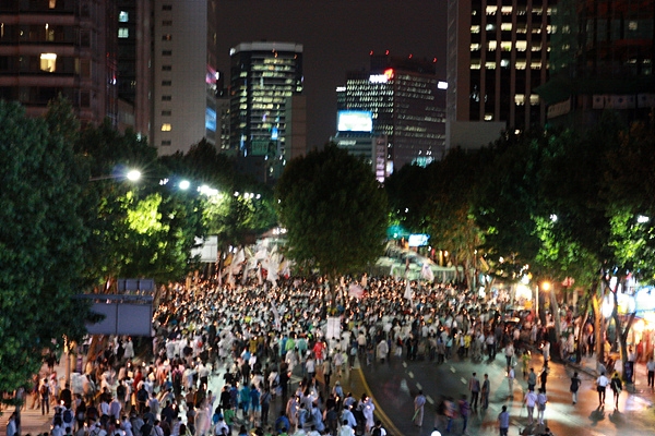경찰의 폭력 진압과 이를 지시한 어청수 경찰청장을 성토하던 목소리는 다시금 단출해졌다. "이명박은 물러나라." 야심한 시각에도 자리를 뜨지 않은 2만여 참가자들은 무슨 주문처럼 이 구호를 끝없이 외쳤다.