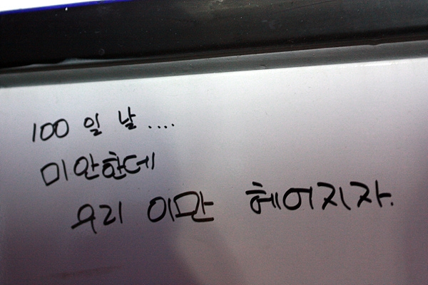 '어떡해 폭력진압 들통 났어. 청수야 대답 좀 해봐. 수가 없어 ㅠㅠ'(강경진압의 화신 어청수 경찰청장을 비꼬며)