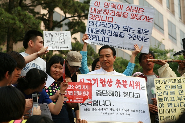 하지만 시민의 반발은 거셌다. 한 시민은 "정치권에 맡기니 이 모양 이 꼴이 돼서 국민들이 직접 나선 것 아니냐"고 최 목사의 주장을 반박했다. 한 시민은 "같은 기독교인인 것이 부끄럽다"며 최 목사를 비난했고, 또 다른 시민은 "운하 옆에 땅 가진 사람들 아니냐"는 '의혹'도 제기했다.