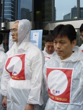 "정부 정책으로 인해 비정규직을 아예 줄인다는 것도 아니고 새로 뽑아서 쓰면서 일하던 사람을 갑자기 나가라는 법이 어디에 있습니까? 다 아이들이 있는 한 가정의 가장들인데 갑자기 새로 직장을 구할 수도 없고요. 비정규직법의 취지 그대로 공기업에서 고용안정을 시켜달라는 것뿐입니다."