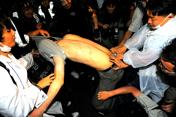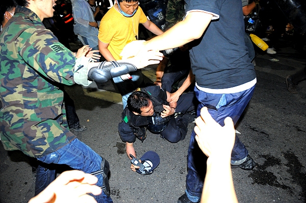 또 연행하기 위해 경찰 병력 사이로 체포된 시민들에게는 전의경들의 발길질이 이어졌고, 일부 흥분한 시민들이 낙오된 전의경을 포위하고 공격했으나 이를 말리는 시민들과 뒤엉켜 혼잡한 상황이 연출되기도 했다. 어떤 경찰은 낙오된 동료를 구하는 과정에서 방패로 무차별적으로 시민들을 가격하는 모습이 목격되기도 했다.