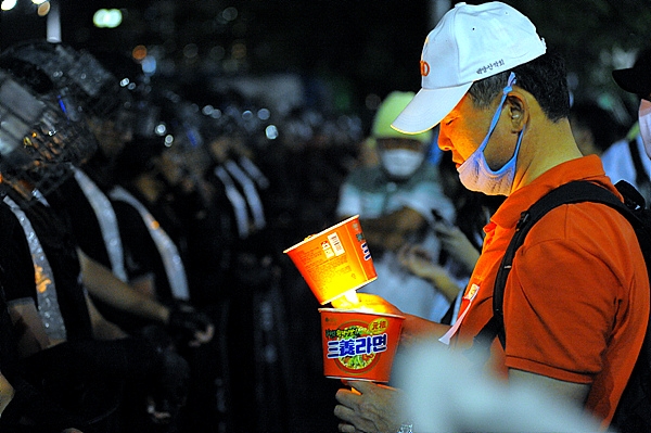 | ▲ 새롭게 등장한 '삼양라면' 촛불. ⓒ프레시안 |