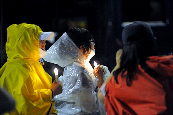 | ▲ 물대포에도 꺼지지 않는 '전지 촛불' ⓒ프레시안 |
