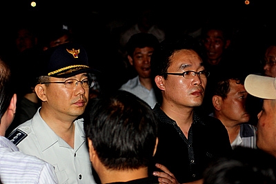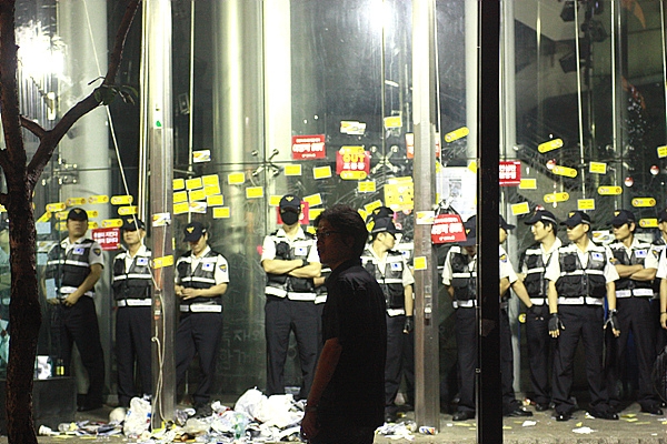<조선일보>가 위치한 코리아나호텔 앞에서의 시위가 격해지고 일부 시민이 주변의 화분을 현관 유리창에 던지자 <조선일보> 측에서는 112에 기물파손 행위로 신고를 했다. 이에 신고를 접수한 남대문서 오 경위 팀이 현장으로 출동했다.