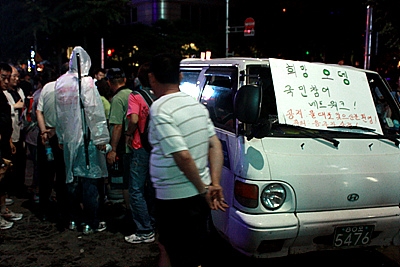 7. 옷차림: "산에도 시선이 있다"는 한 아웃도어 브랜드의 광고처럼, 시위 현장에도 "시선이 많다." 옷차림에 신경을 쓰는 것은 개인의 선택에 맡기겠다. 시위가 50여 일이 넘어가자 시위현장에서 낯익었던 얼굴들이 커플로 맺어지는 경우도 간혹 있다는 후문. 그러나 '염불'보다 '잿밥'에 관심을 두는 것은 좀 곤란하지 않을까.
