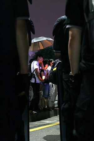 조선일보 앞에서 광화문 네거리까지 세종로 길은 전경들이 점거하고 있었다. 이 가운데 경찰에 의해 모든 길이 봉쇄돼 차량벽 건너편으로 가지 못한 일부 시민들이 광화문 네거리 위에서 촛불을 들었다. 숫자는 불과 200명도 채 되지 않았다.