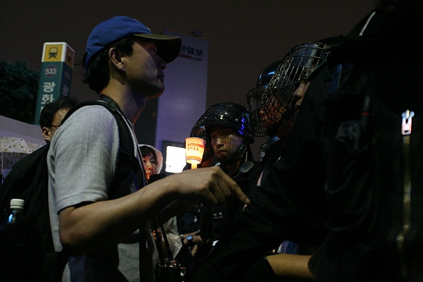물론, 경찰에 따르면 그렇다. 경찰은 이날 밤 광화문 네거리에서 시민들을 그렇게 '위협'했고 '협박'했다.