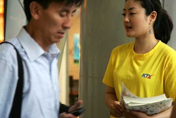 오후 2시, KTX열차승무지부 조합원 옥유미 씨는 시민들에게 나눠 줄 홍보물을 들고 서울역 아래로 내려갔다.
