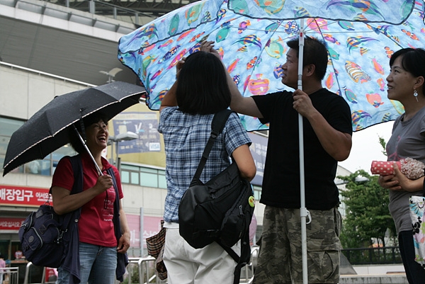 그래서 이랜드 조합원들도 "끝까지 한다"는 말을 "주문처럼 외운다." 갑자기 쏟아지는 비에 대형 파라솔을 들고 서 "작년에도 그러더니 올해 여름도 여기로 피서를 왔네"라고 농담을 하면서.
