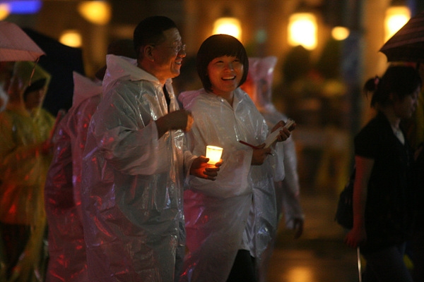 송 신부의 말대로 축복이 비를 타고 내린 것일까, 시국미사는 시종일관 평화롭게 이어졌다. 얇은 비닐로 된 비옷을 입고, 한 손에는 우산을 다른 한 손에는 촛불을 들고 시민들은 신부님들의 말 한 마디에 웃고 또 웃었다.