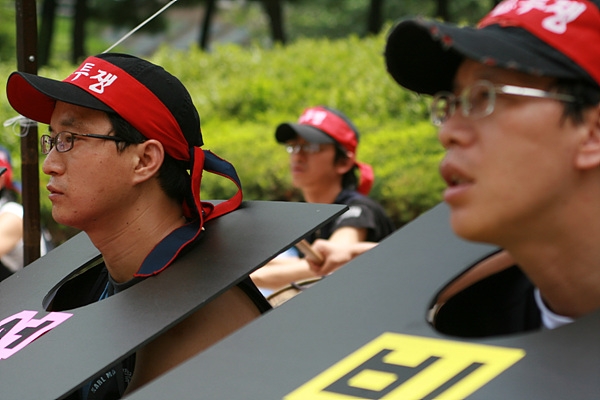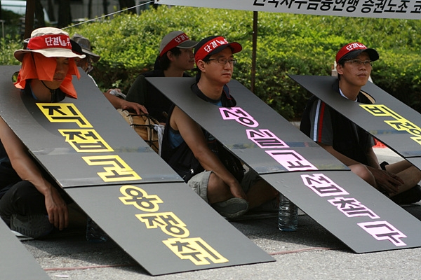 증권노조 코스콤비정규직지부가 이날 오전부터 서울 여의도 증권선물거래소 앞뜰에서 76시간 연좌농성을 시작한 것은 이 여름이 다 가기 전에 "잃어버린 시간"을 되찾기 위해서다.